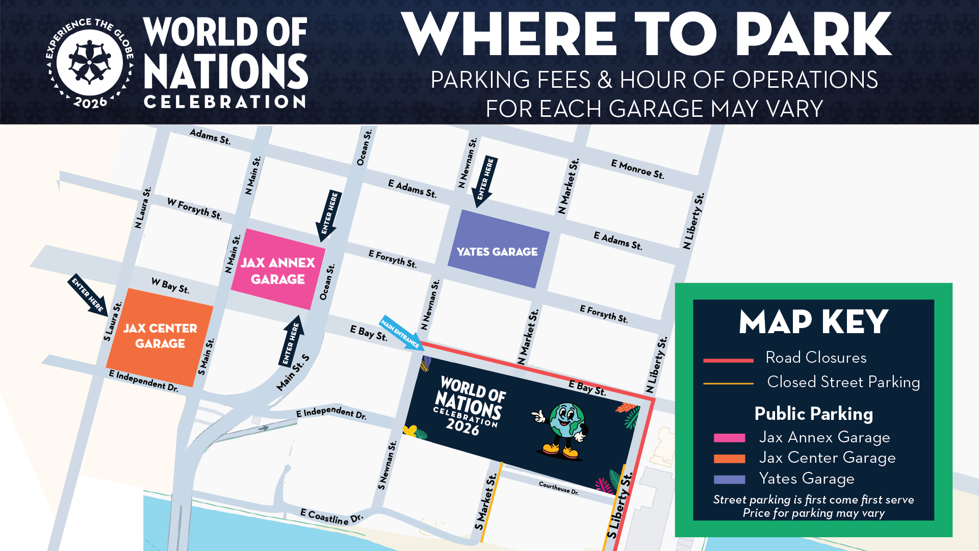Explore the event layout before you arrive! View the official 2026 World of Nations Celebration map to locate country tents, beverage booths, restrooms, and entry points. Plan your route and make the most of your visit.